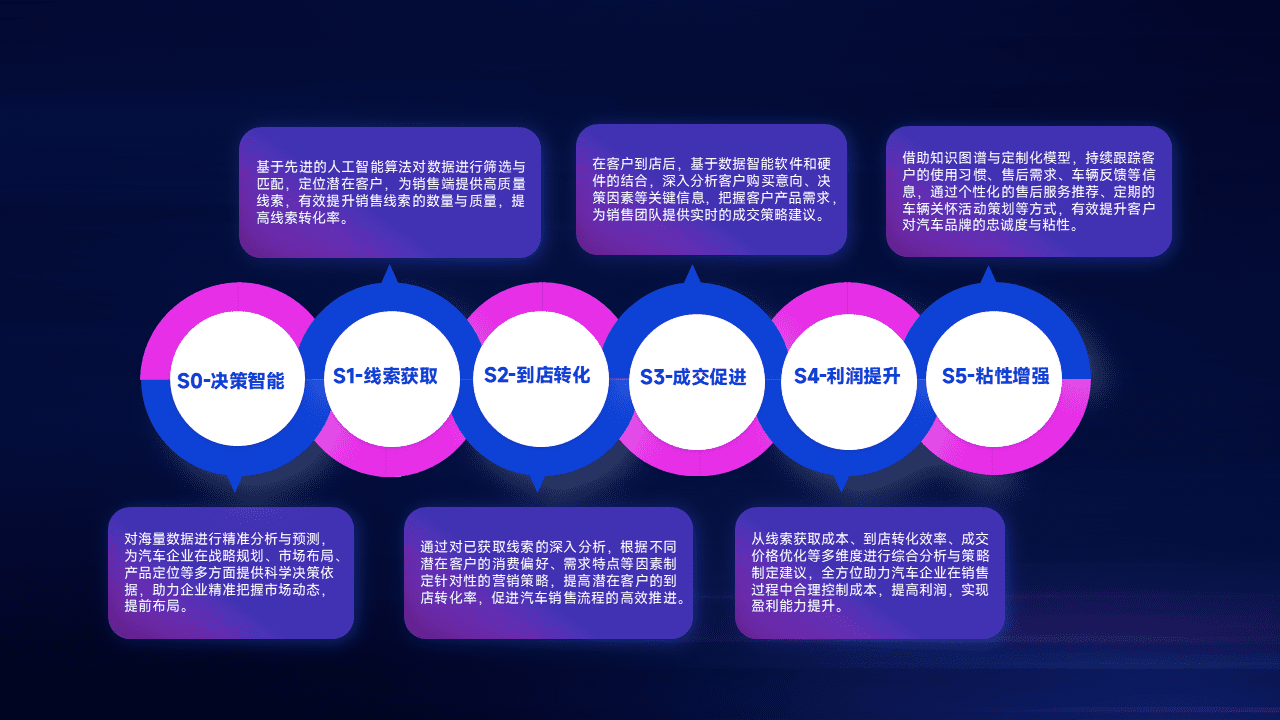 通过拓宽潜在客户来源、、、、优化线索分配并提高到店转化率,,,以增强销售效率。。同时,,,利用线索数据不断优化分析模型,,有效提升转化率,,,扩大营销影响力。。。。